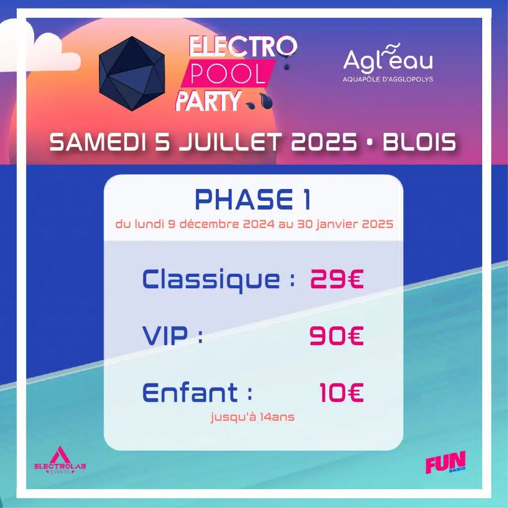 Organisée par l’association ElectroLab Events, avec le soutien de Fun Radio et de nombreux partenaires régionaux, l’Electro Pool Party offre 12 heures non-stop de son électro dans un environnement exceptionnel. Que vous souhaitiez danser devant la scène, profiter d’un moment de détente entre amis au bord de la piscine ou vous immerger complètement dans une ambiance festive, tout est réuni pour vous garantir une expérience unique. Le complexe entièrement privatisé proposera des animations spectaculaires : une scène suréquipée d’effets spéciaux, un bar démentiel, des goodies gonflables, une piscine parfumée, des casiers pour ranger ses affaires et même des stands coiffure, maquillage et massage pour une expérience encore plus immersive.