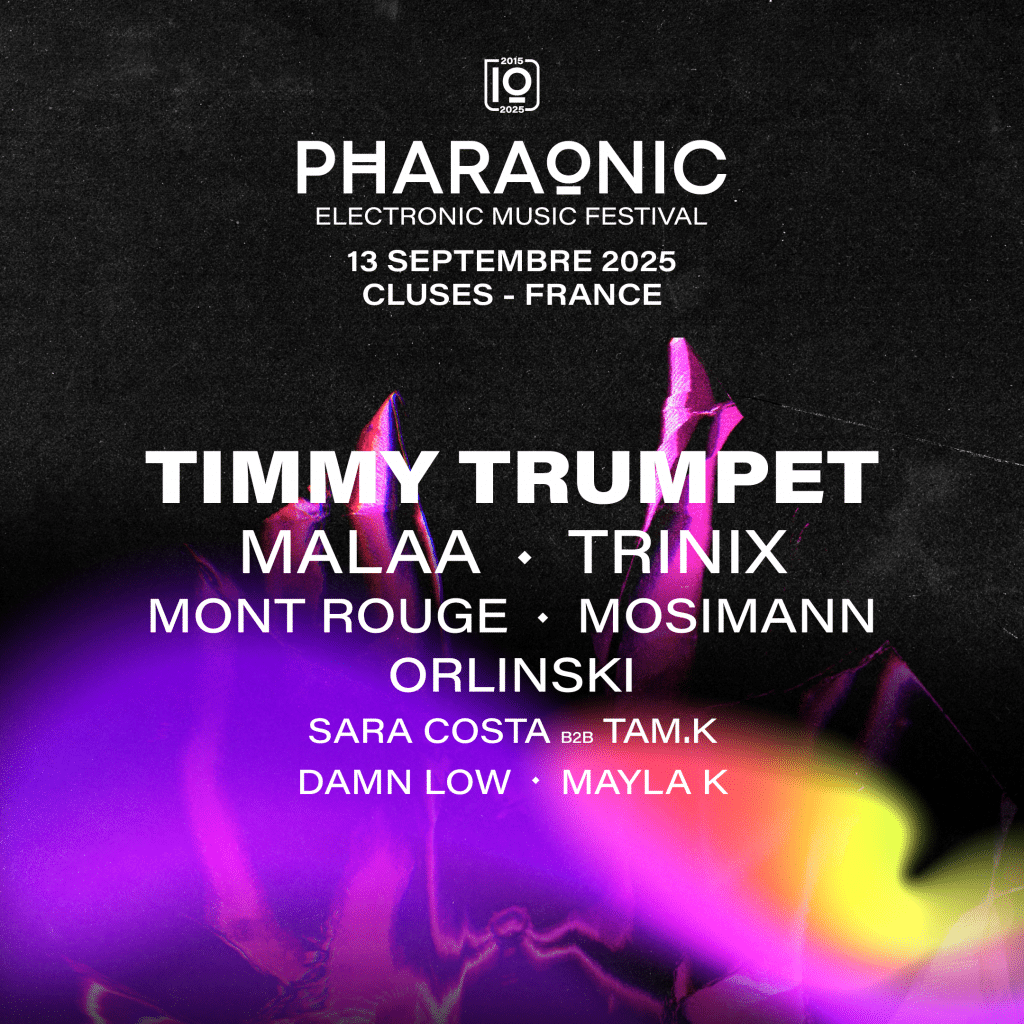 Pharaonic mettra aussi les femmes à l’honneur avec un back-to-back 100 % féminin entre Sara Costa et Tam.K, et une ouverture solaire signée Mayla K, résidente Fun Radio. Le local de l’étape Damn Low conclura les festivités avec un set diabolique, et un dernier nom s’ajoutera via le Tremplin DJ, dont le lauréat ouvrira le festival.