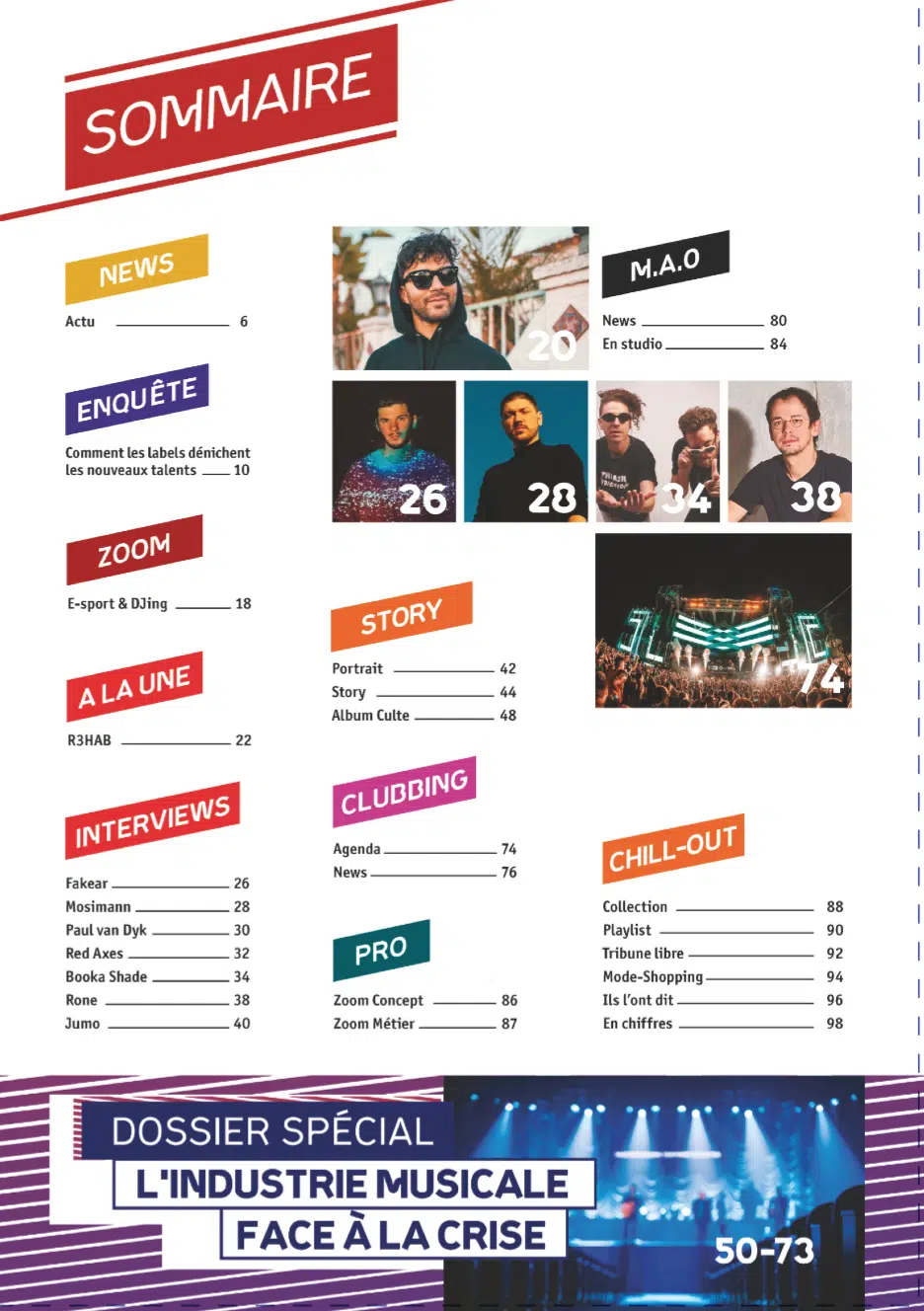 Comment la scène électronique fait-elle face à la crise du Covid-19 ? De Dehors Brut à Soundcloud en passant par Ableton, Family Piknik ou encore Sunnery James et Ryan Marciano, nous avons interrogé de nombreux acteurs phares de cette industrie pour tenter d’y voir plus clair. Notre interview À la Une consacrée à R3HAB, tête d’affiche EDM faisant partie des artistes les plus streamés au monde, des entretiens avec les légendes Paul van Dyk et Booka Shade, les inarrêtables Red Axes ou encore les Français Mosimann, Fakear, Rone et Jumo, une enquête sur la manière dont les labels dénichent les nouveaux talents, un zoom sur les liens de plus en plus ténus entre DJing et e-sports… Ce 25ème numéro de DJ MAG se veut particulièrement dense et garanti 100% fait maison, dans tous les sens du terme !