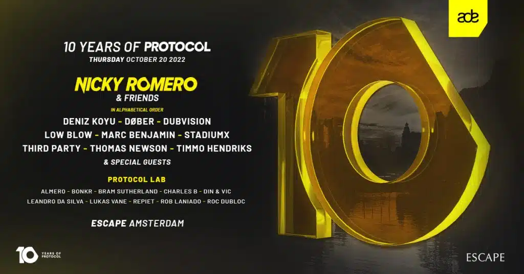 Le 20 octobre prochain, Protocol Recordings va délivrer une soirée de gala qui s’annonce d’autant plus spéciale car le label souffle cette année sa 10ème bougie. Ce dernier a été fondé par Nicky Romero en 2012 et a signé des artistes de renoms comme les 7ème et 12ème du dernier Top100DJs Don Diablo et R3HAB ou encore les interprètes du remix d’« Astromania » Vicetone, titre qui avait notamment connu un regain de popularité lors des premiers confinements en 2020.